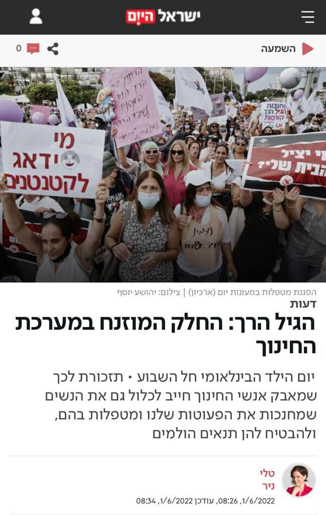 המאבק של אנשי החינוך חייב לכלול גם את הנשים שמחנכות ומטפלות בפעוטות שלנו ולהבטיח להן תנאים ההולמים את עבודת הקודש שלהן. התקווה לחינוך איכותי בישראל לא תהיה שלמה בלעדיהן.
