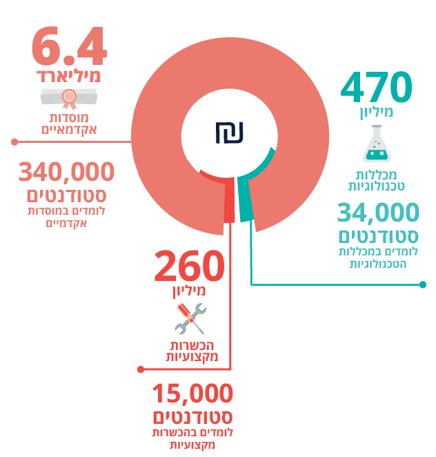כ-6.4 מיליארד שקלים הקצתה המדינה בשנת 2022 לסבסוד הלימודים של 340,000 סטודנטים שלמדו לתארים אקדמיים. רק כעשירית מכך, כ-730 מיליון שקלים, הקצתה המדינה לסבסוד הלימודים במכללות הטכנולוגיות ובהכשרות מקצועיות.