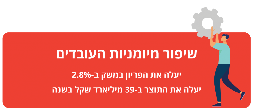 לפי הערכת בנק ישראל מ-2018, שיפור מיומנויות העובדים, כך שידמו לממוצע במדינות המפותחות, היה משפיע באופן דרמטי על המשק והחברה בישראל, והיה מביא לעליה של 39 מיליארד שקל בשנה בתוצר הלאומי הגולמי. שיפור כזה משמעו שכר גבוה יותר לעובדים, צמיחה למשק, והרבה יותר אפשרויות לחברה בישראל.