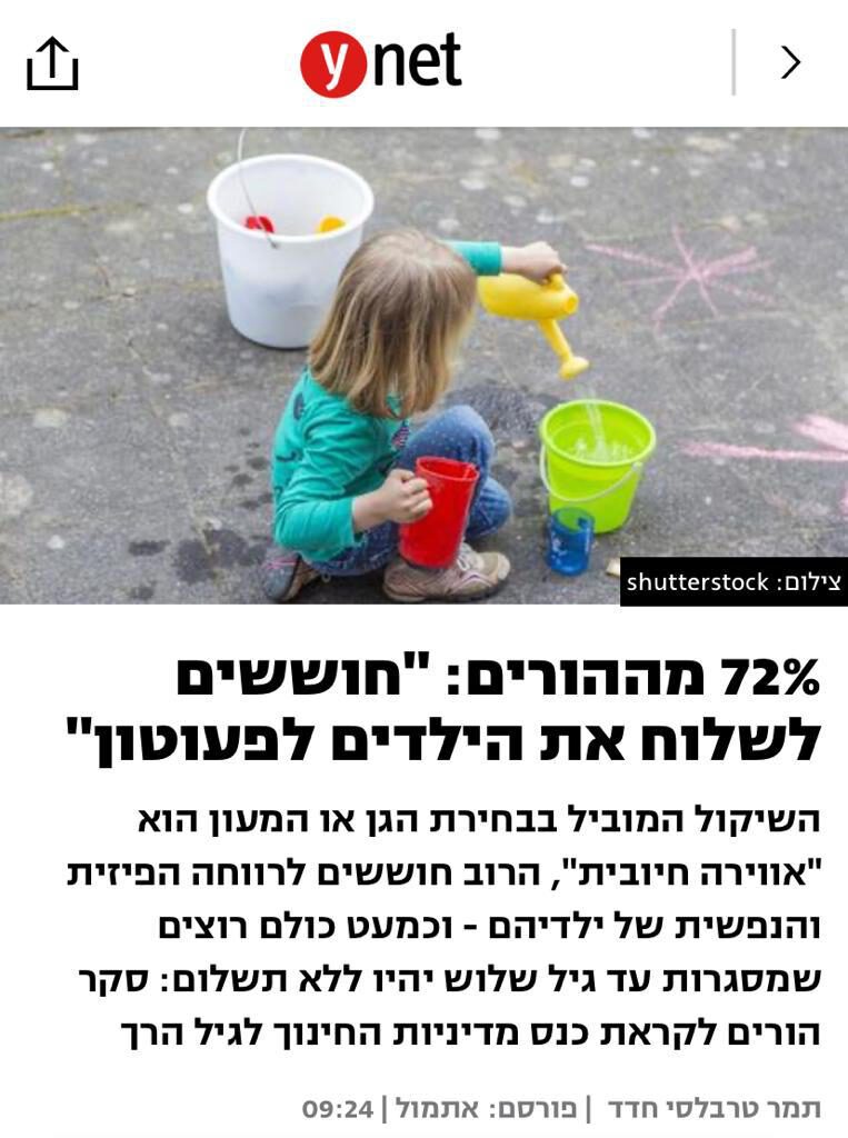 בכנס גם הוצג סקר שהזמנו במיוחד לרגל האירוע על עמדותיהם וציפיותיהם, ואף חששותיהם, של ההורים לפעוטות עד גיל שלוש. בסקר, שערך מכון המחקר רושינק ופורסם אתמול בידיעות אחרונות וב-YNET, השתתפו 302 הורים, המהווים מדגם מייצג של כלל האוכלוסייה בישראל.