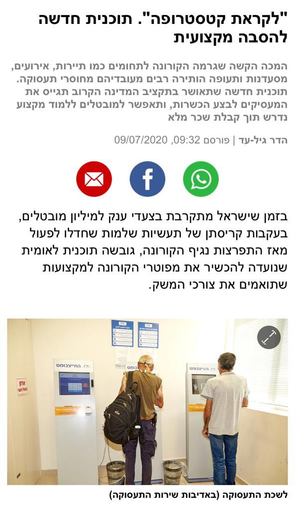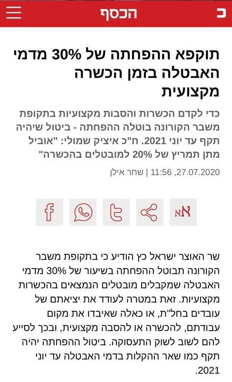 ביקשנו מהממשלה גם לסייע לשימור עובדים. אנו מציעים מנגנון שיאפשר להעסיק עובדים בחלקיות משרה ולקבל פיצוי מהמדינה על היקף המשרה שקוצץ.