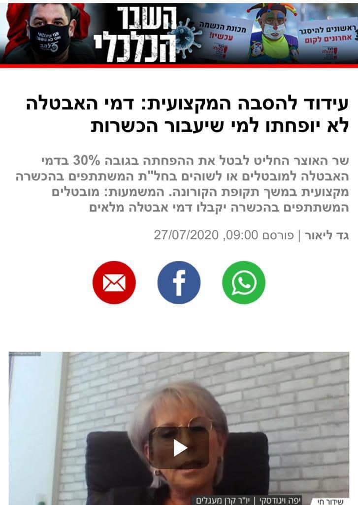 2. בני 67 ומעלה יקבלו דמי אבטלה של 75% מהמשכורת החודשית, עד גובה של 4,000 ש"ח.