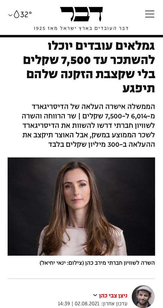 בחוק התקציב לשנים 2021-2022 התקבלה הצעה שפיתחנו יחד עם עמותת ״והדרת – הכוח השלישי״ ודחפנו יחד עם שותפינו ב"פורום 60 ומעלה",– כיום הוא עומד על 8,700 שקלים לחודש. כתוצאה מכך, הכנסתם של 20,000 עובדים אחרי גיל הפרישה גדלה ב-1,000 שקלים נטו בחודש בממוצע.