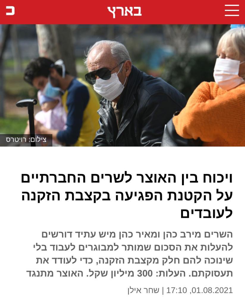 בתקופת הקורונה: בעקבות התערבותנו כ-50,000 מפוטרים בני 67 ומעלה קיבלו מענקי הסתגלות