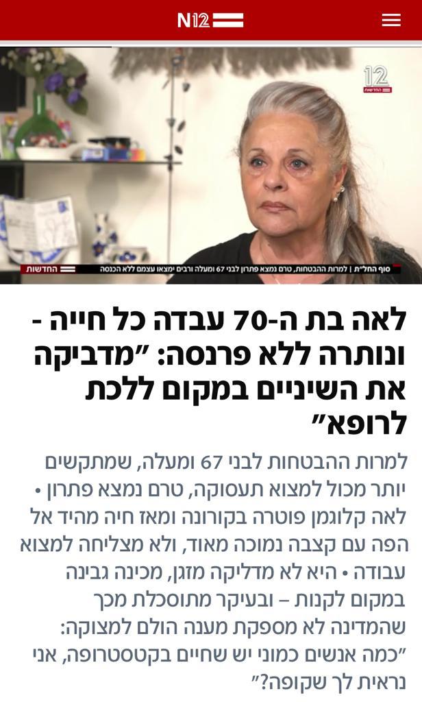 עובדים בני 67 ומעלה שמפוטרים מעבודתם אינם זכאים על פי החוק לדמי אבטלה. עם תחילת משבר הקורונה, עובדים בגילים אלה היו בין הראשונים שפוטרו או הוצאו לחל"ת, ורבים מהם היו עלולים להידרדר במהירות לעוני.