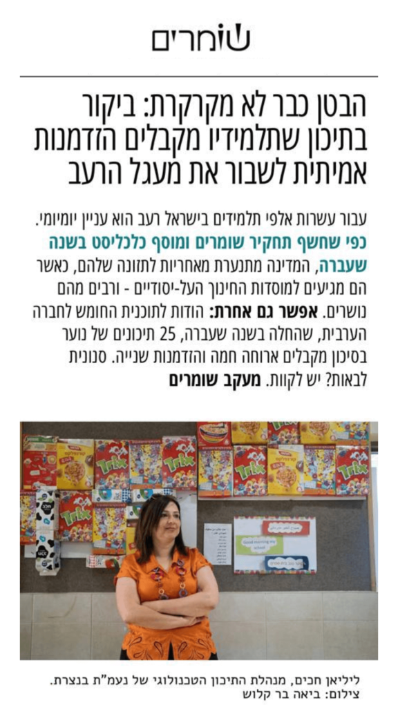 בספטמבר 2024 הגענו להישג שני: הממשלה החליטה להרחיב את התוכנית לכל בתי הספר לנוער בסיכון בכל הארץ! מדובר בתיקון היסטורי שיקדם שוויון הזדמנויות ויאפשר לכל התלמידים לממש את הפוטנציאל שלהם ולבנות לעצמם עתיד טוב יותר.