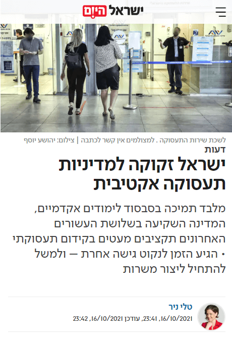 בממשלה ובכנסת אושר תקציב של 1.5 מיליארד שקלים לקורסים להכשרות מקצועיות לשנים 2020-2021, אך למרבה הצער רק חלקו נוצל בפועל. אמנם מספר המשתתפים בהכשרות ב-2021 היה הגבוה ביותר זה עשורים, אך עדיין נמוך בהרבה מהצרכים – הן של הזקוקים להכשרות ולהסבות והן של המשק הישראלי.