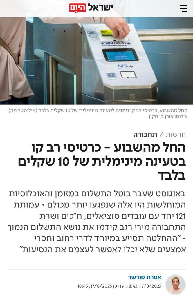בזכות התערבותנו: רב קו לכולם בהטענה נמוכה