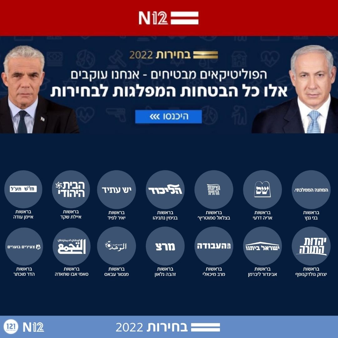 יחד עם N12 ערכנו פרויקט מיוחד, שבו מיפינו את הבטחות הבחירות של כל המפלגות בכל הנושאים החברתיים. לא זוכרים מה הבטיחו המפלגות? זה הזמן לקרוא את תמצית ההתחייבויות שלהן.