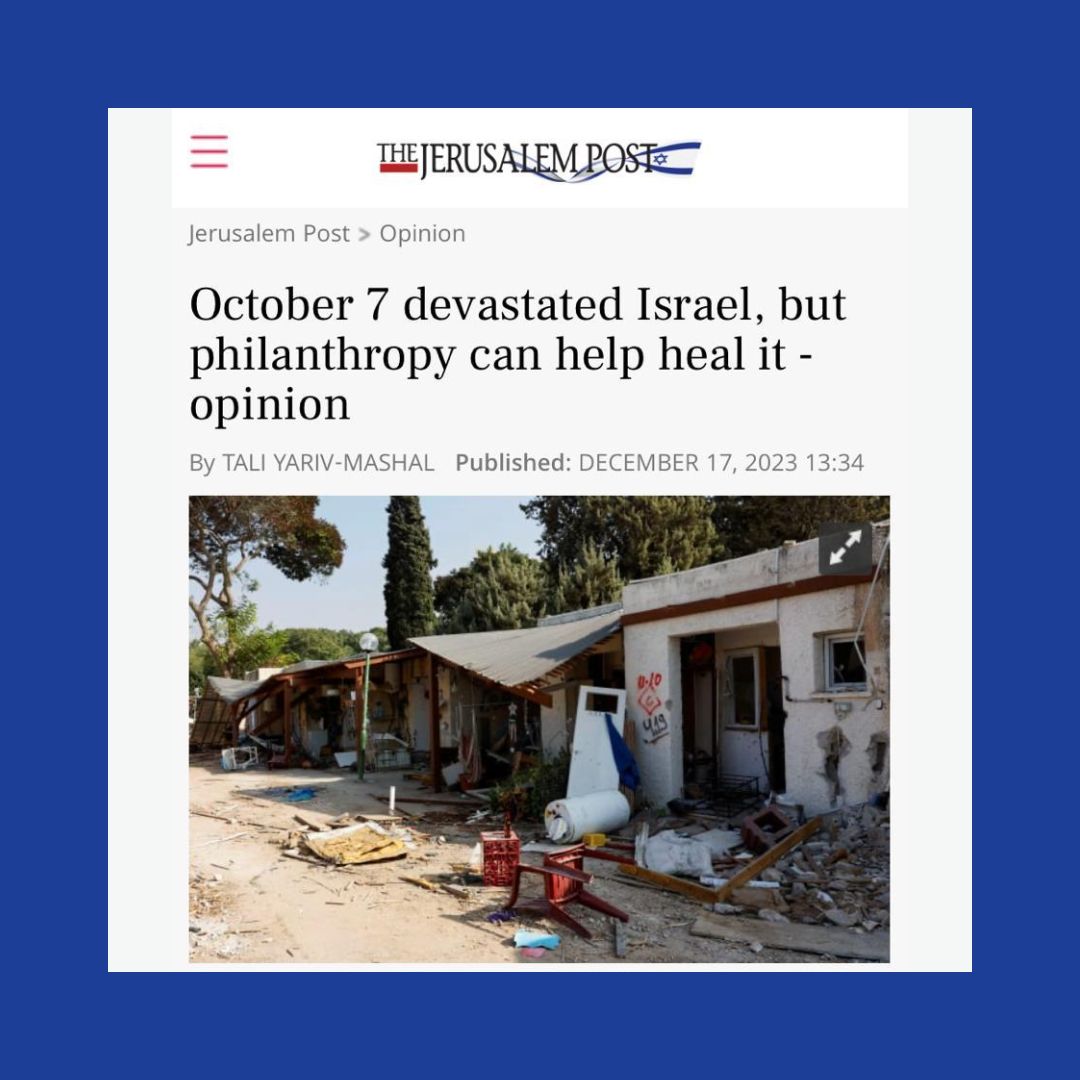 - October 7 devastated Israel, but philanthropy can help heal it - opinion | The Jerusalem Post, 17.12.23