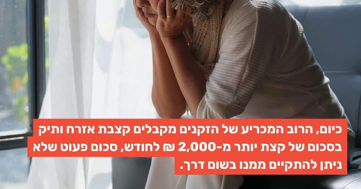 כיום, הרוב המכריע של הזקנים מקבלים קצבת אזרח ותיק נמוכה במיוחד, בסכום של קצת יותר מ-2,000 ₪ לחודש. לאלו שהכנסתם מפנסיה ועבודה נמוכה או שאין להם הכנסה נוספת בכלל, המדינה מציעה, קצבת השלמת הכנסה שמגיעה בסך הכל, יחד עם הקצבה הבסיסית, לתמיכה של 4,000 ₪ לחודש, שאליה נלוות הטבות נוספות, בעיקר בתחום הדיור והבריאות.