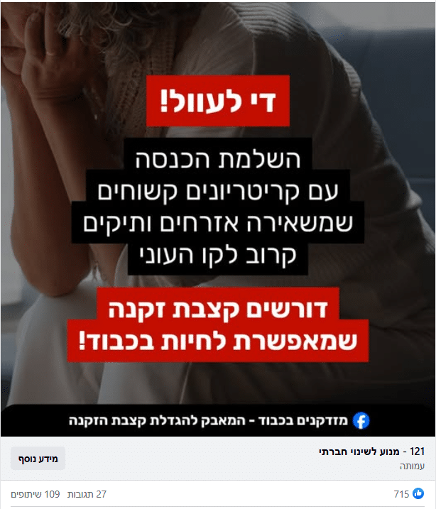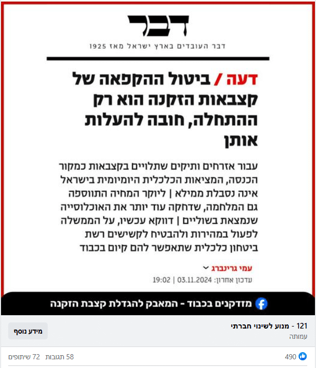 - ביטול ההקפאה של קצבאות הזקנה הוא רק ההתחלה, חובה להעלות אותן | דבר, בתאריך 6.11.24