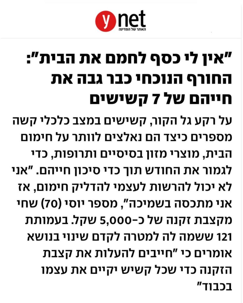 - "אין לי כסף לחמם את הבית": החורף הנוכחי כבר גבה את חייהם של 7 קשישים | Ynet, בתאריך 23.2.25