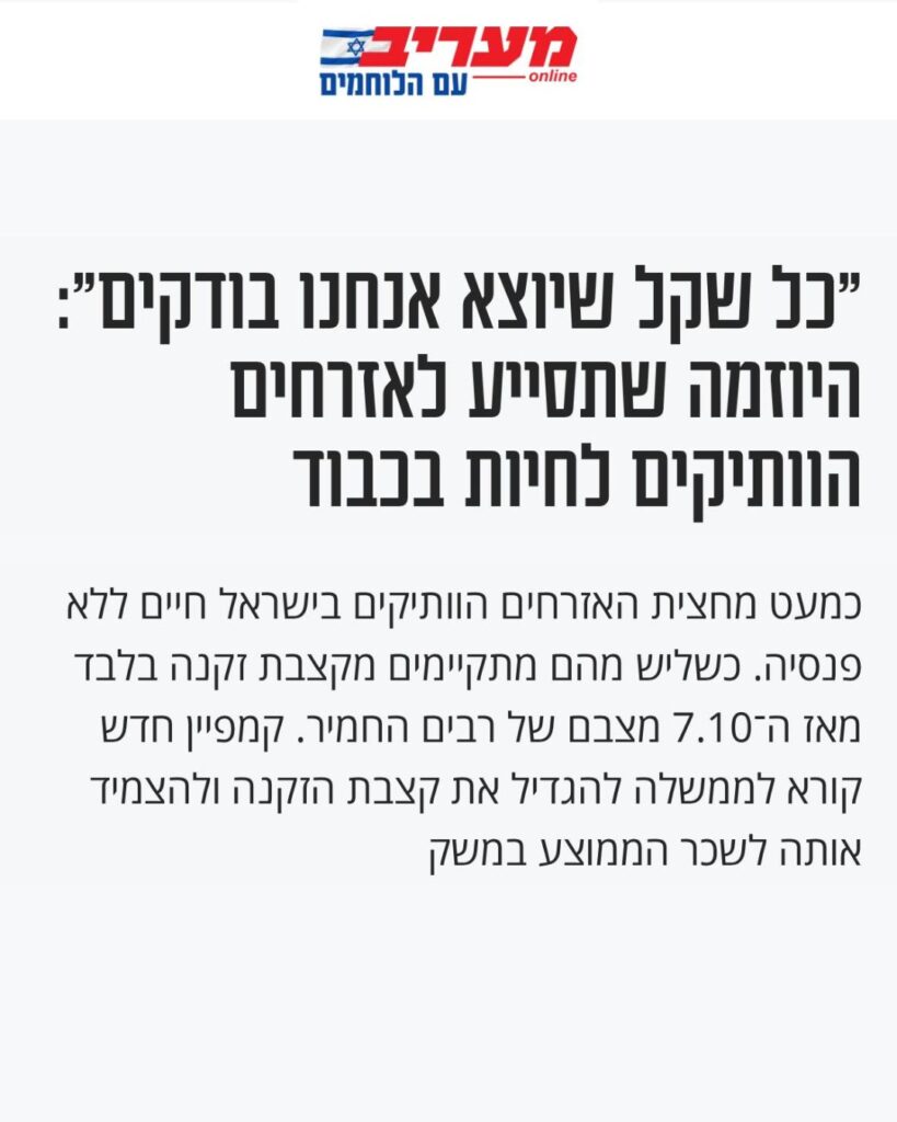 - "כל שקל שיוצא אנחנו בודקים": היוזמה שתסייע לאזרחים הוותיקים לחיות בכבוד | מעריב, 16.9.25