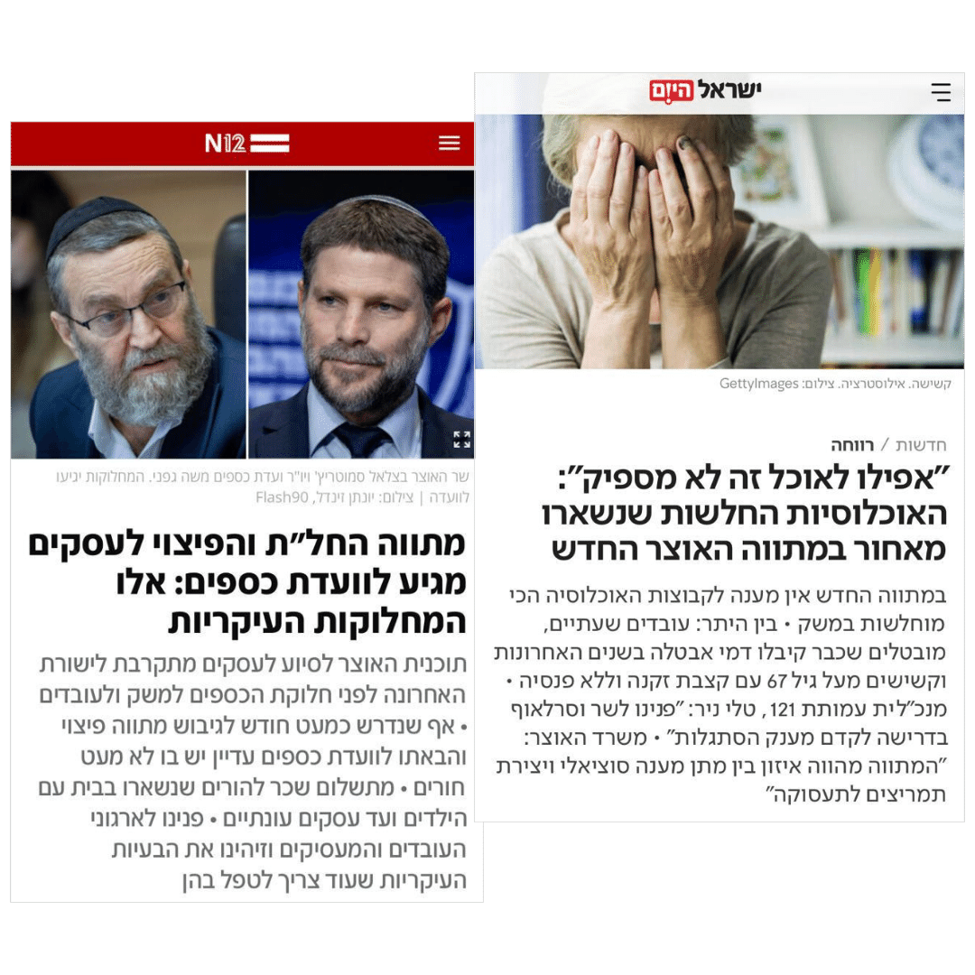 למרות ההתנגדות הראשונה של משרד האוצר, התוכנית הכלכלית למלחמה שאושרה הלילה בחקיקה בכנסת כוללת את רוב המענים שדרשנו:
